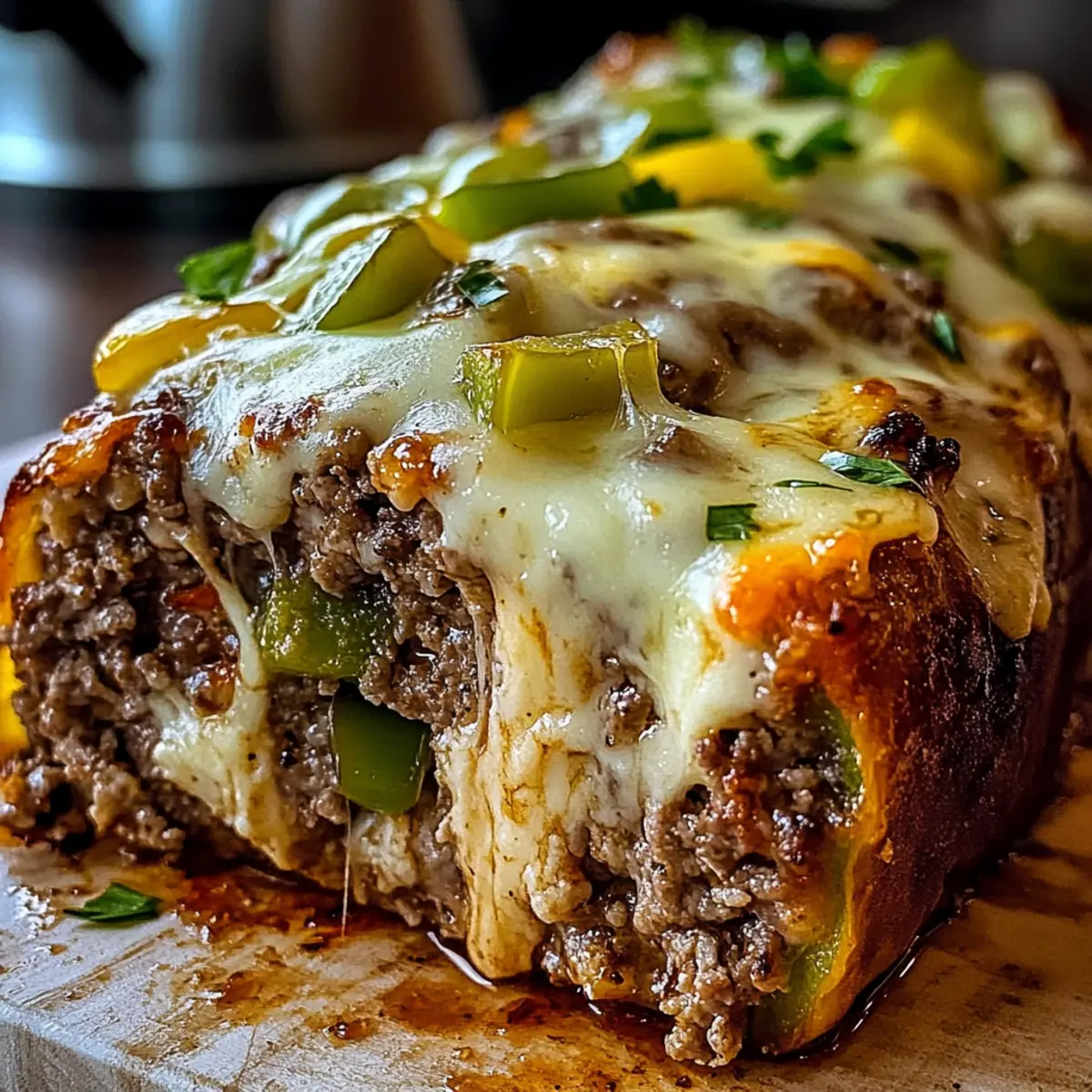 Einzigartiger Genuss: Diese Kombination aus klassischem Philly Cheesesteak und saftigem Meatloaf sorgt für einen besonders herzhaften Geschmack, den du lieben wirst.