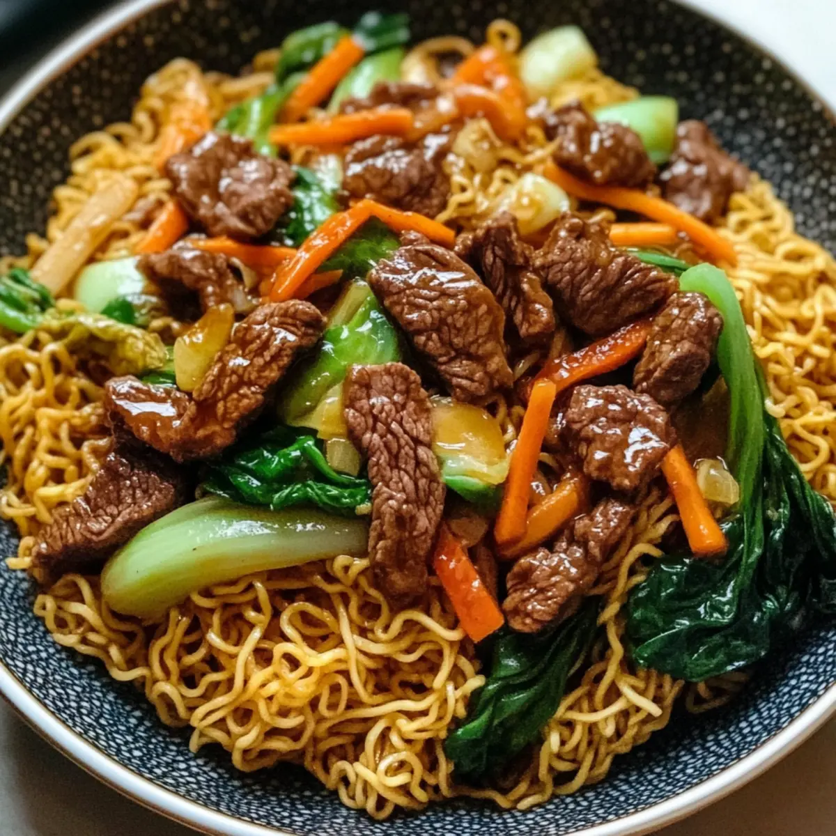 Rindfleisch Pfanne gebraten mit knusprigen Nudeln