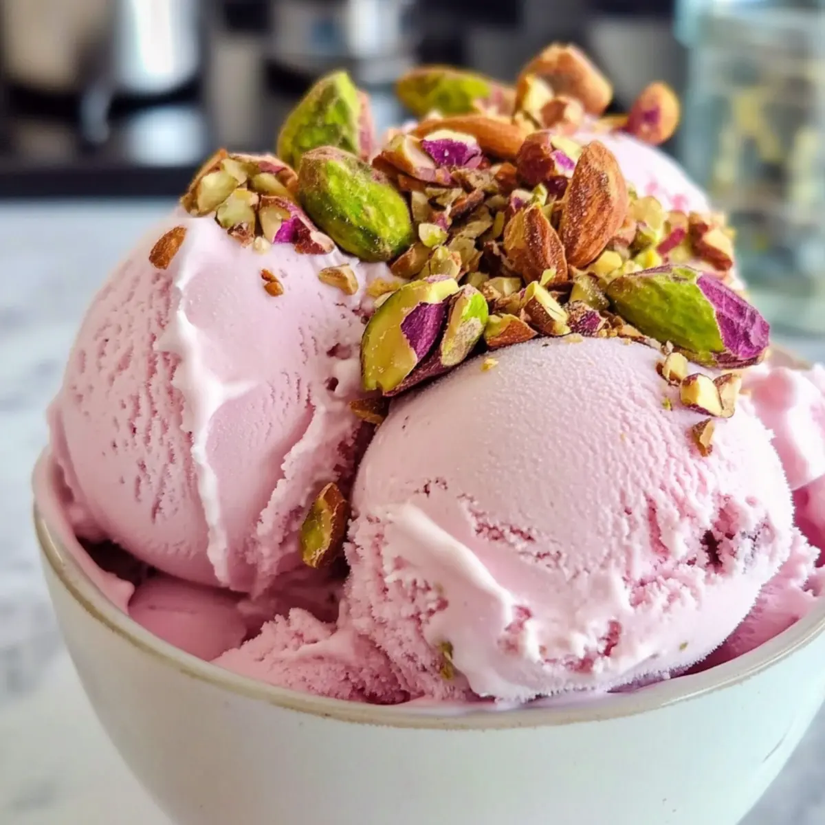 - Serviere die Rosen-Eiscreme in Waffeln oder Schalen und garniere sie nach Belieben.