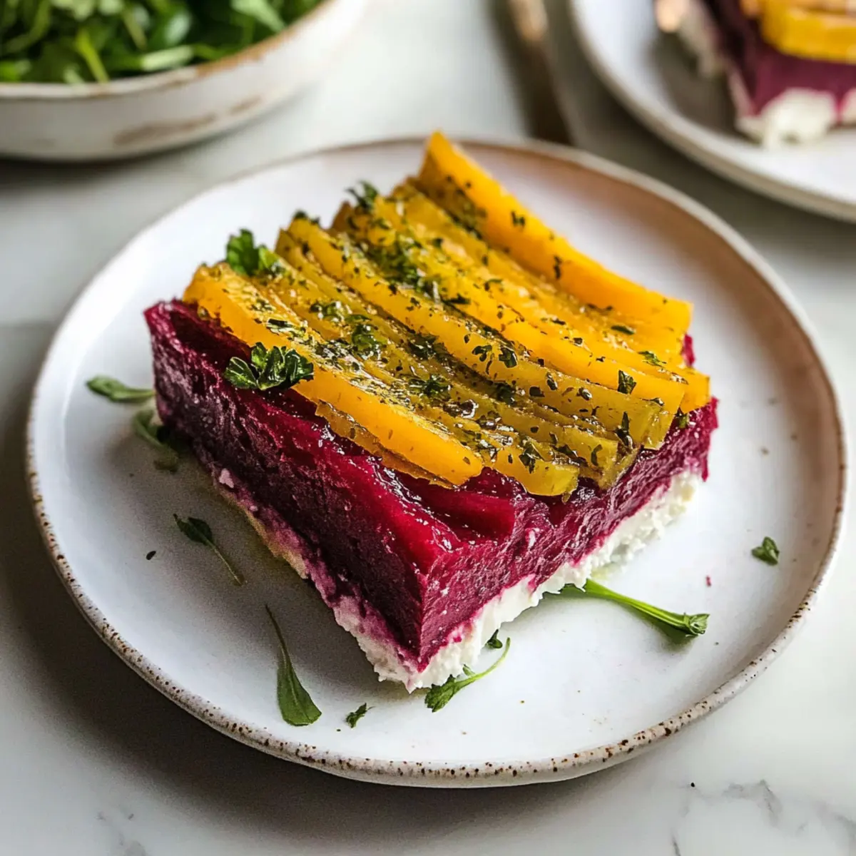Eleganz auf dem Teller: Diese Rote-Bete-Terrine ist nicht nur ein visueller Hochgenuss, sondern verschafft jedem Festessen einen Hauch von Raffinesse. Einfache Zubereitung: In nur wenigen Schritten kannst du ein beeindruckendes Gericht kreieren, ganz ohne stressige Kocherei. Vielfältige Variationen: Probier die Füllung mit verschiedenen Kräutern oder Käsealternativen aus, um sie nach deinem Geschmack anzupassen. Glutenfrei: Ideal für Gäste mit speziellen diätetischen Bedürfnissen, ohne Abstriche beim Geschmack. Die frische Kombination aus süßen Rüben und cremigem Ziegenkäse wird jeden begeistern! Ein perfektes Rezept für dein nächstes Dinner oder als Teil einer Festplattenvorbereitung.