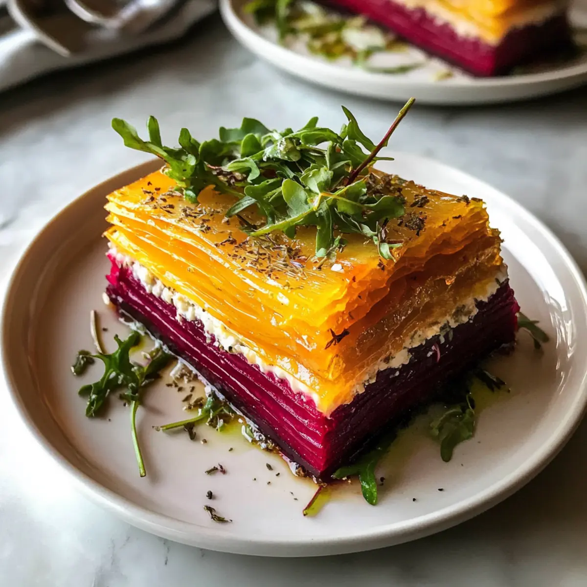Gleichmäßiges Schneiden: Verwende einen Mandolinenschneider für eine gleichmäßige Dicke der Beet-Scheiben. Dies verbessert die Präsentation und sorgt dafür, dass die Schichten harmonisch aussehen.