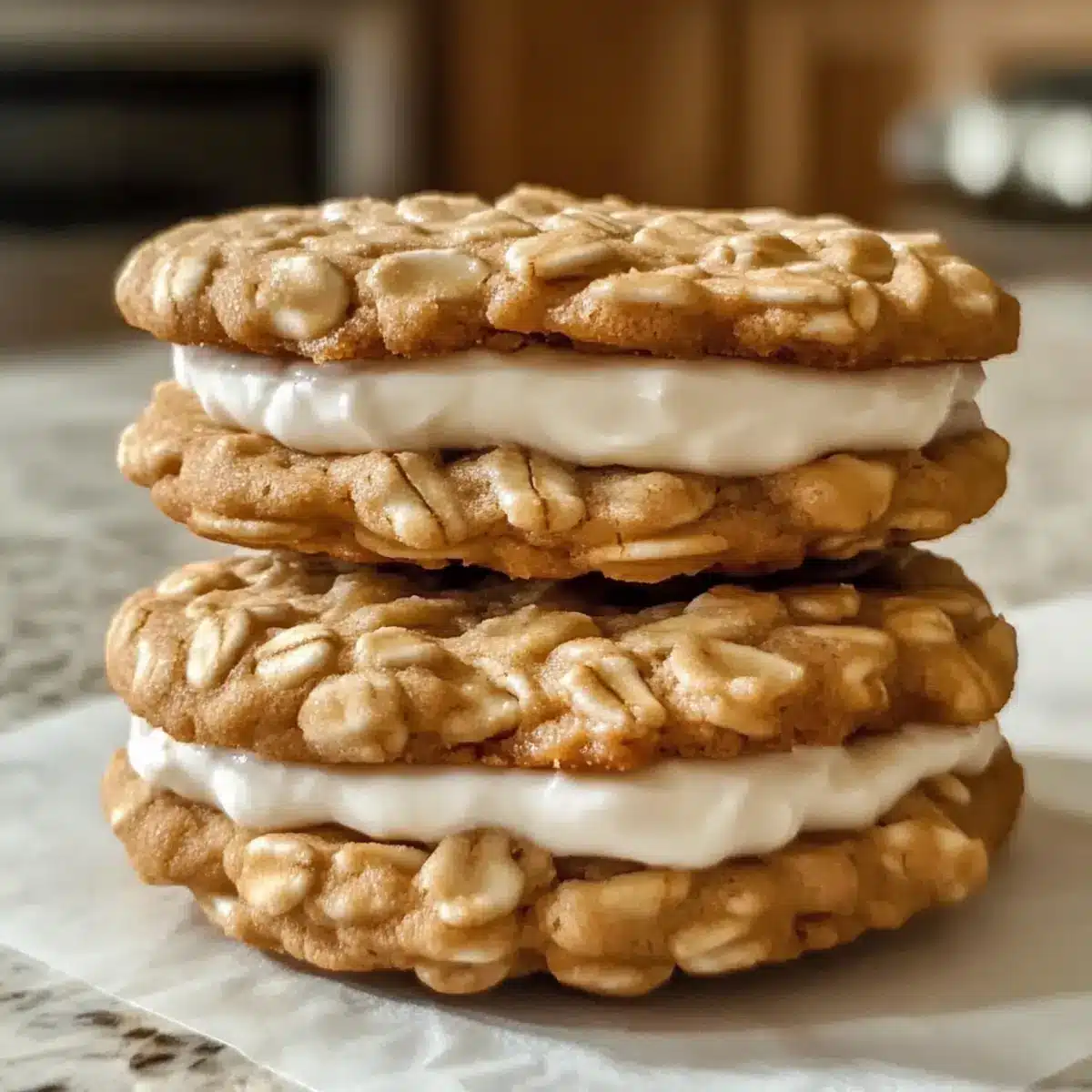 Lege die gefüllten Kekse für etwa 10-15 Minuten in den Kühlschrank, damit die Füllung leicht festigen kann. Diese kurze Kühlzeit sorgt dafür, dass die Füllung stabil bleibt, wenn die Sauerteig Haferkekse serviert werden.
