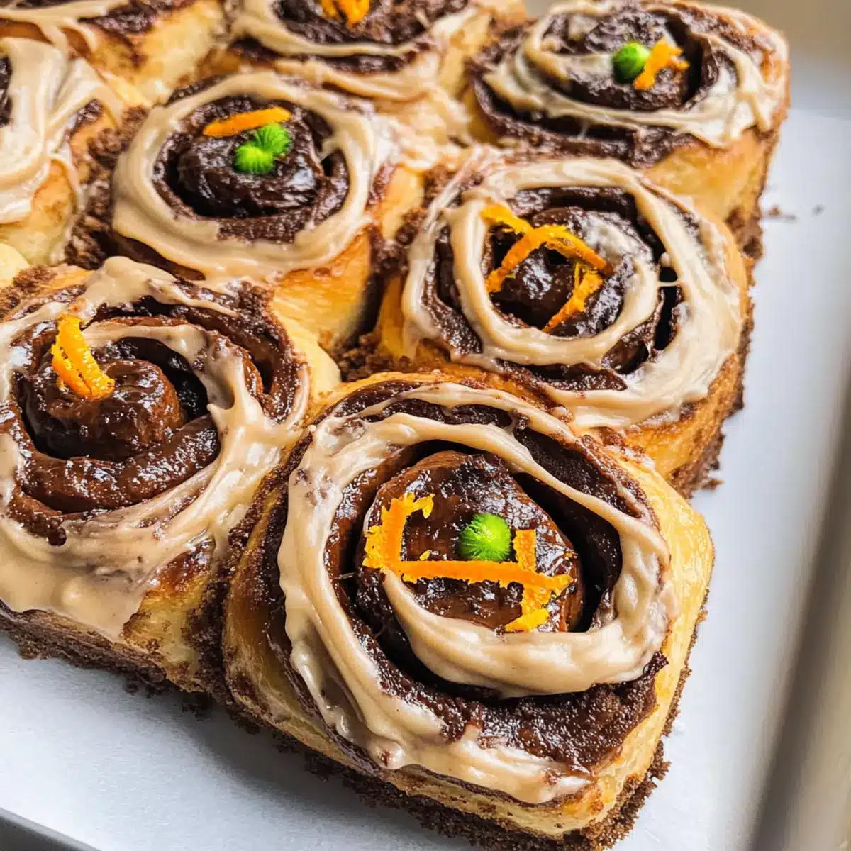 Festliche Aromen: Der harmonische Mix aus Schokolade und frischer Orange macht diese Zimtschnecken einzigartig und sorgt für ein Geschmackserlebnis, das die Sinne betört.