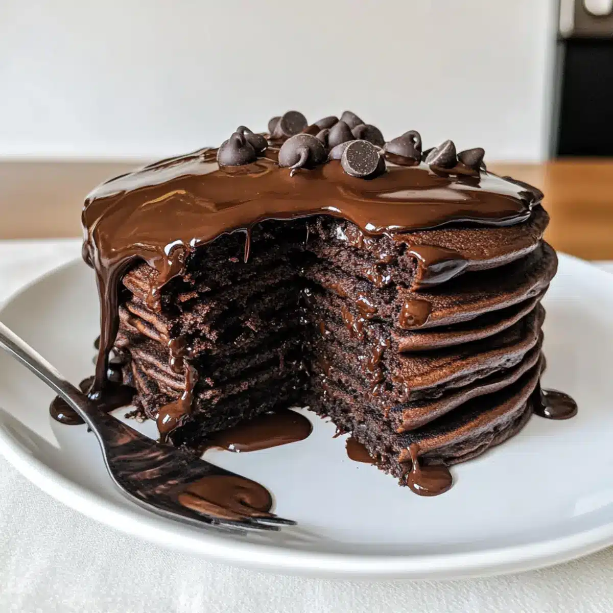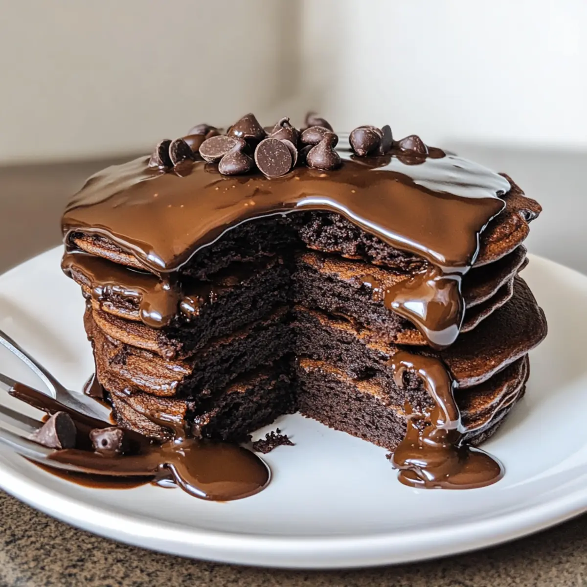 Fluffige Schokoladenpfannkuchen mit Ganache