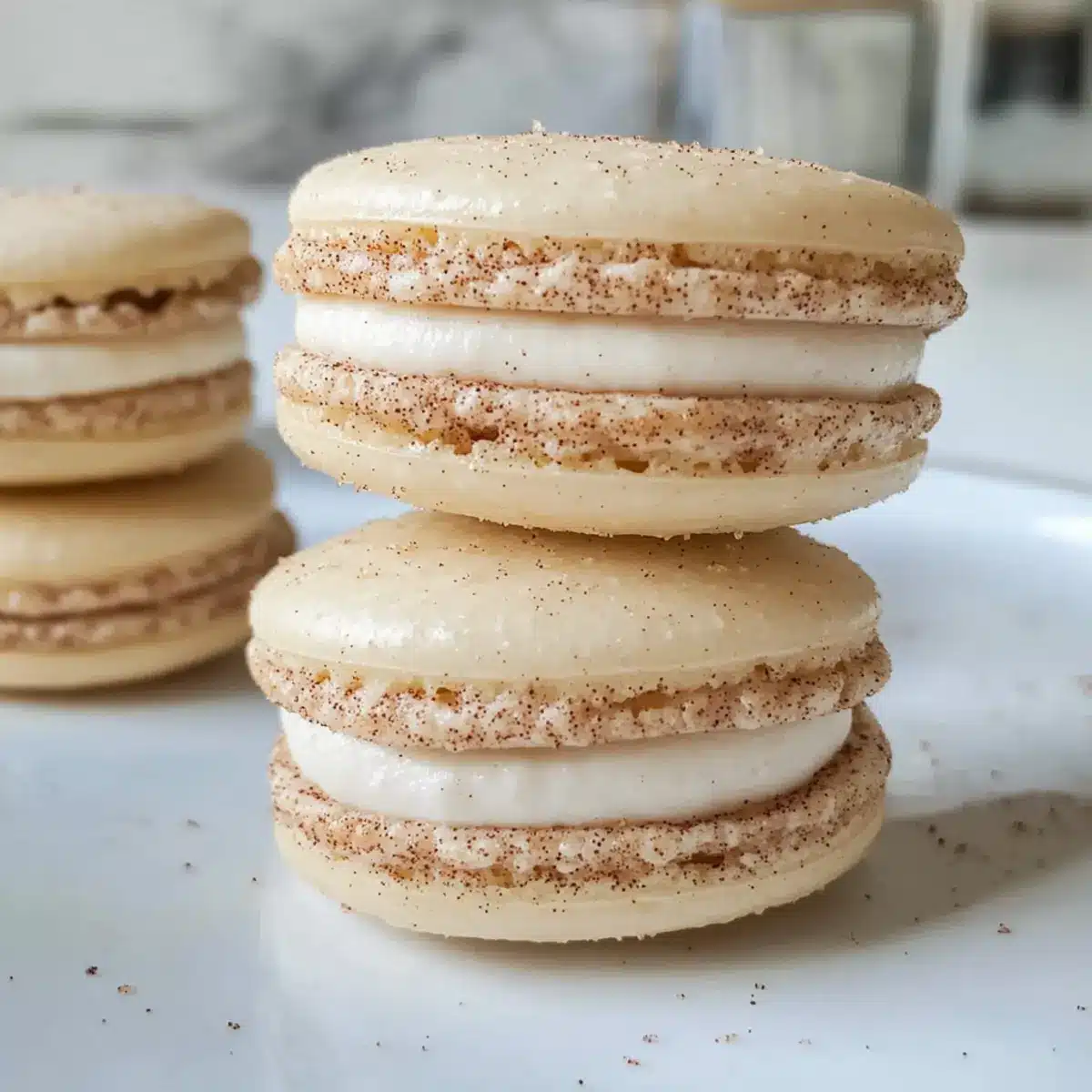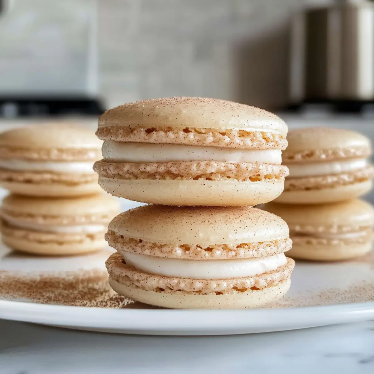 Einzigartiger Genuss: Diese Snickerdoodle-Macarons vereinen das Beste aus zwei Welten: die Knusprigkeit der Macarons und die Gewürznoten von klassischen Snickerdoodle-Cookies.