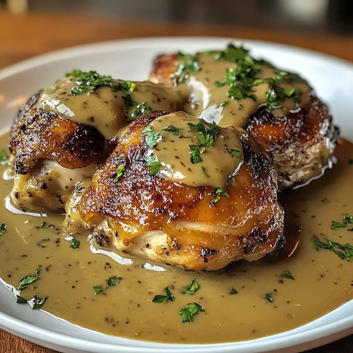 Überbackene Hähnchenschenkel mit cremiger Sauce