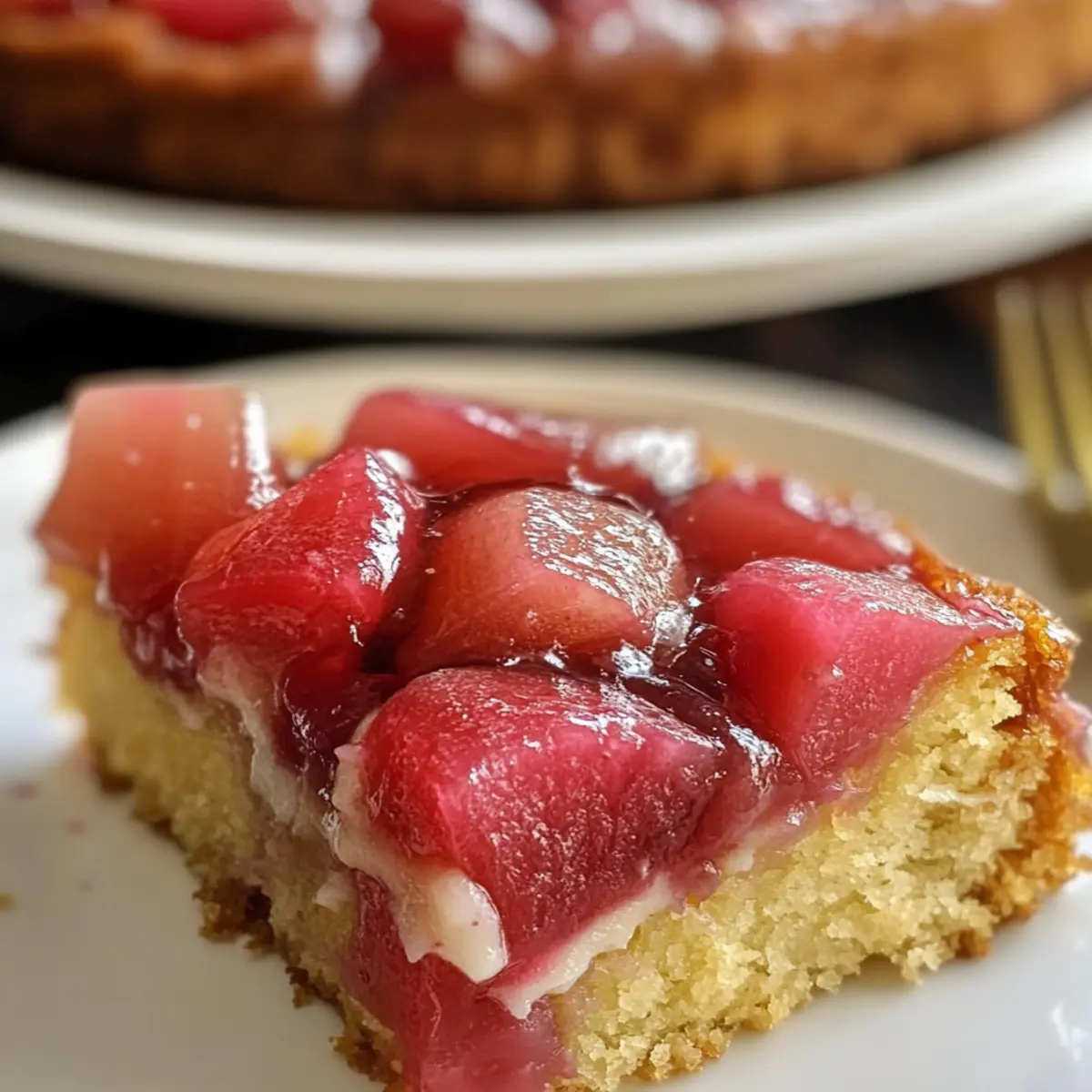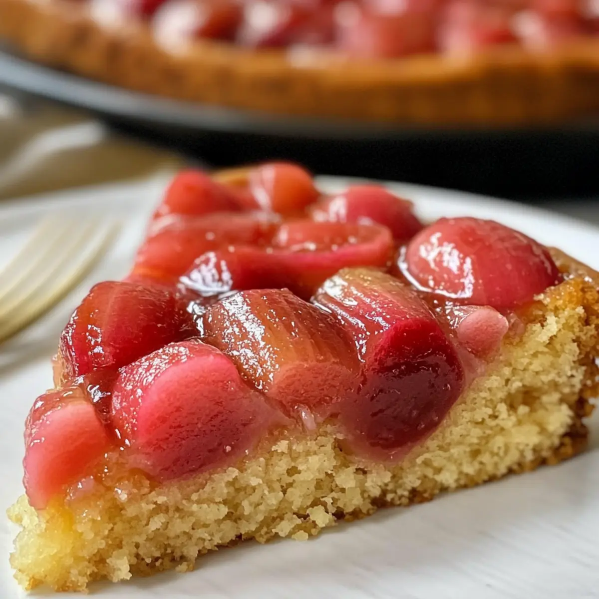 Umdrehkuchen mit Rhabarber und Erdbeeren genießen
