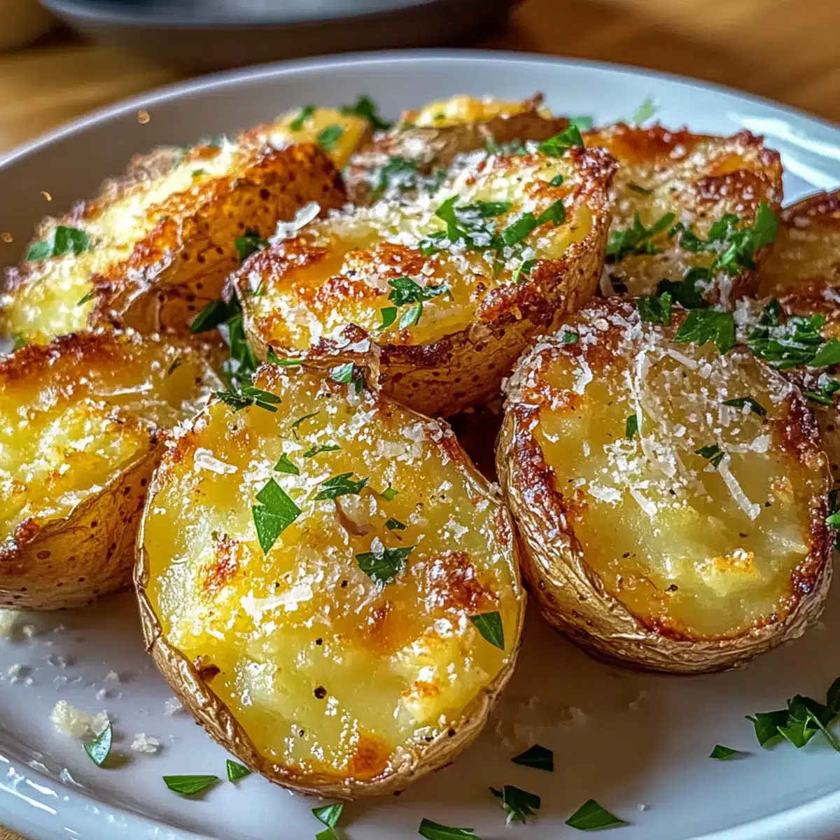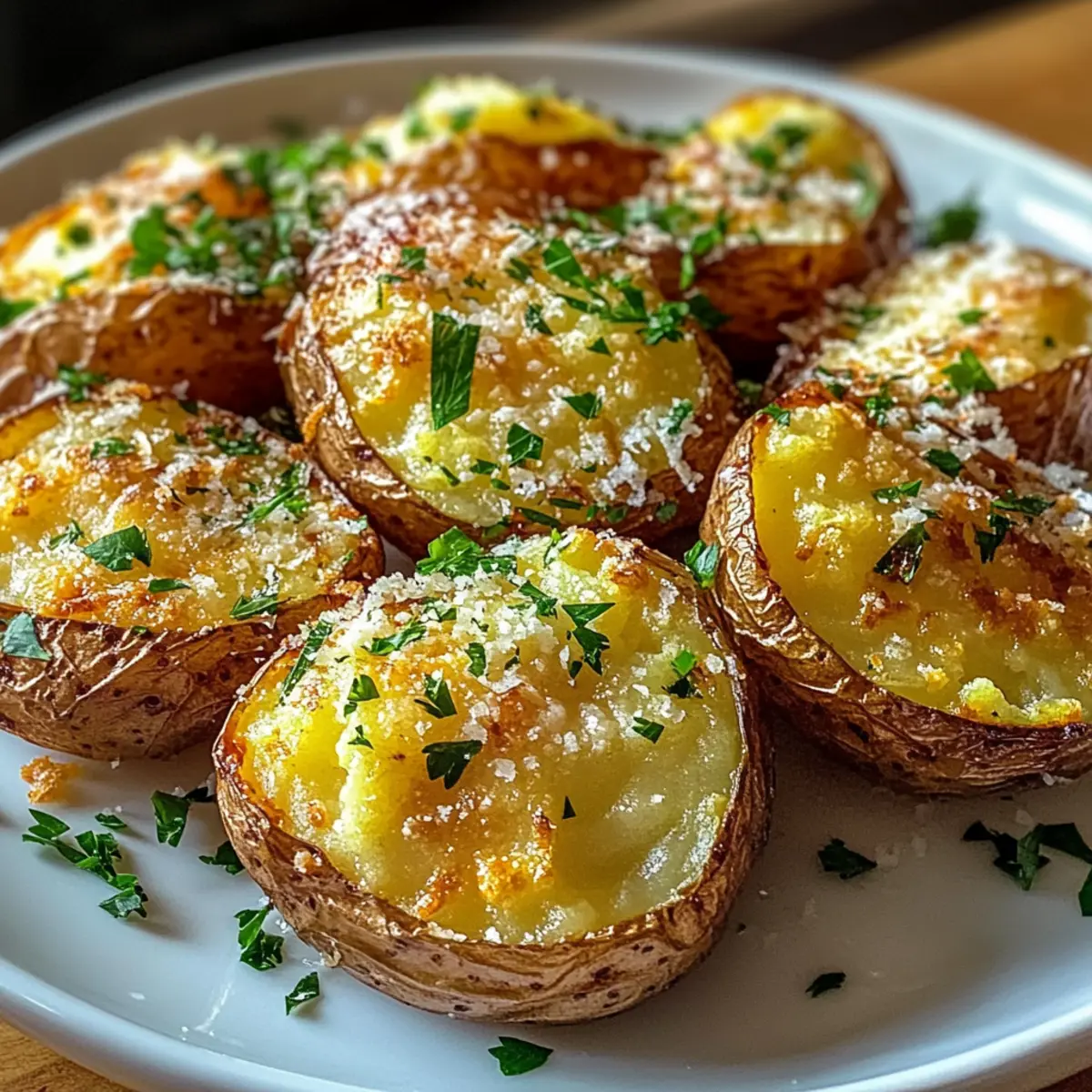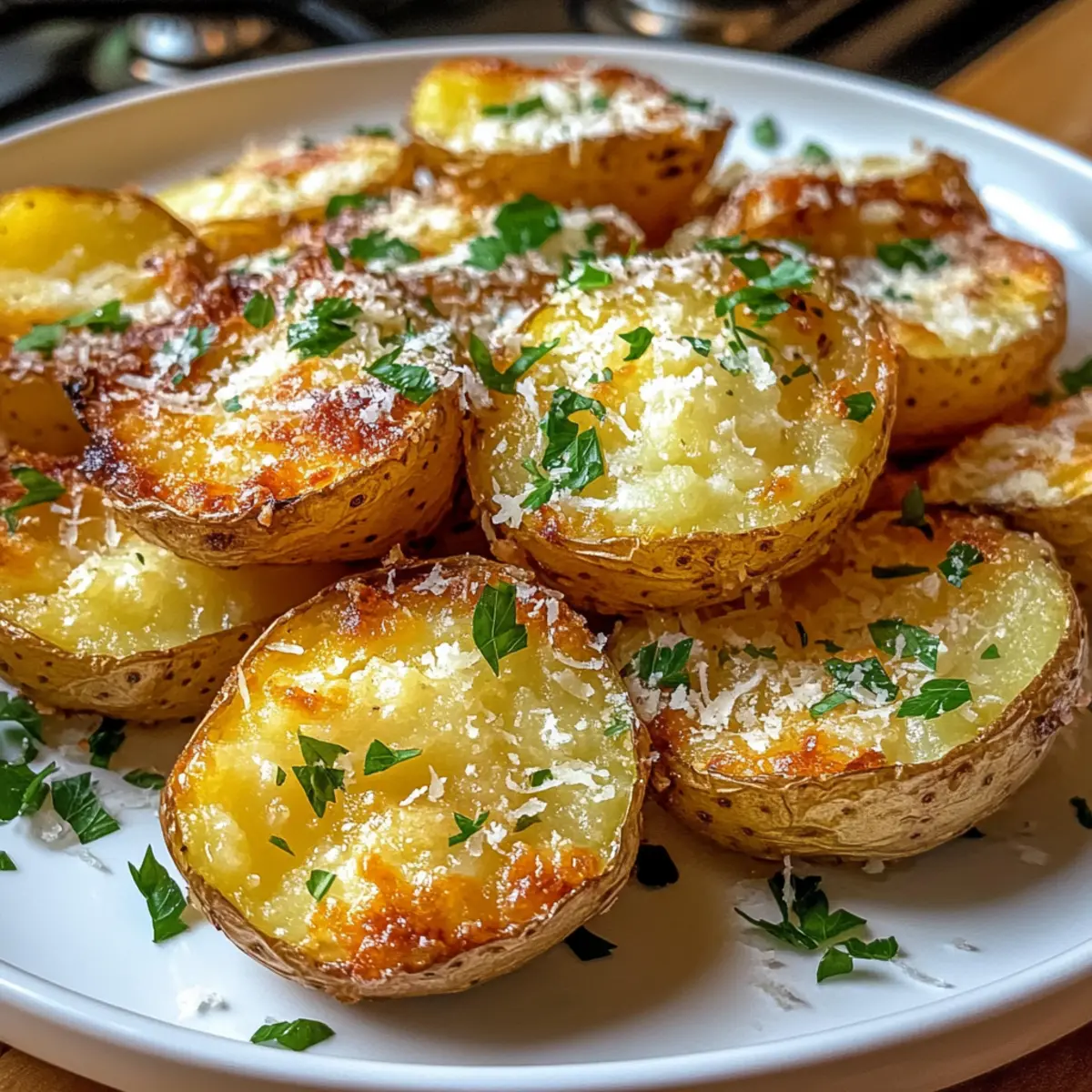 Lassen Sie sich von diesen Crispy Baked Smashed Potatoes mit Knoblauch und Parmesan begeistern und machen Sie das nächste Abendessen unvergesslich!